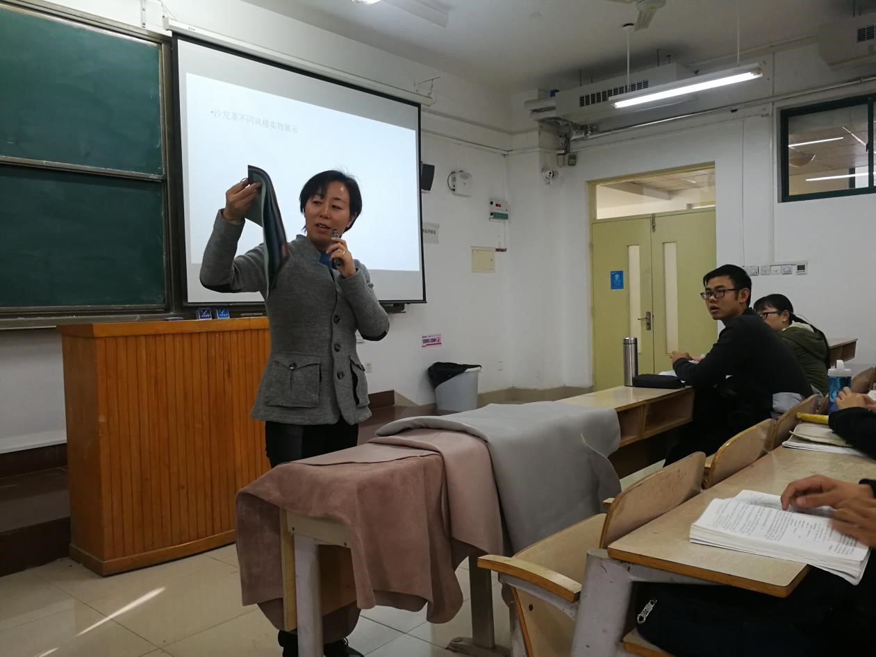 授课期间,岳总向学生介绍了沙发革整饰的基本工艺流程和技术,通过展示相关样品革,着重以自然摔纹沙发革为例,阐述了工艺控制的要点环节。同时,就学生关注的职业规划问题,岳总以皮革行业实际用人需求为例,帮助学生进行职业定位和人生规划。授课结束后,生物质与制革系与岳总就皮革整饰工艺和校企产学研合作进行了深入探讨交流。