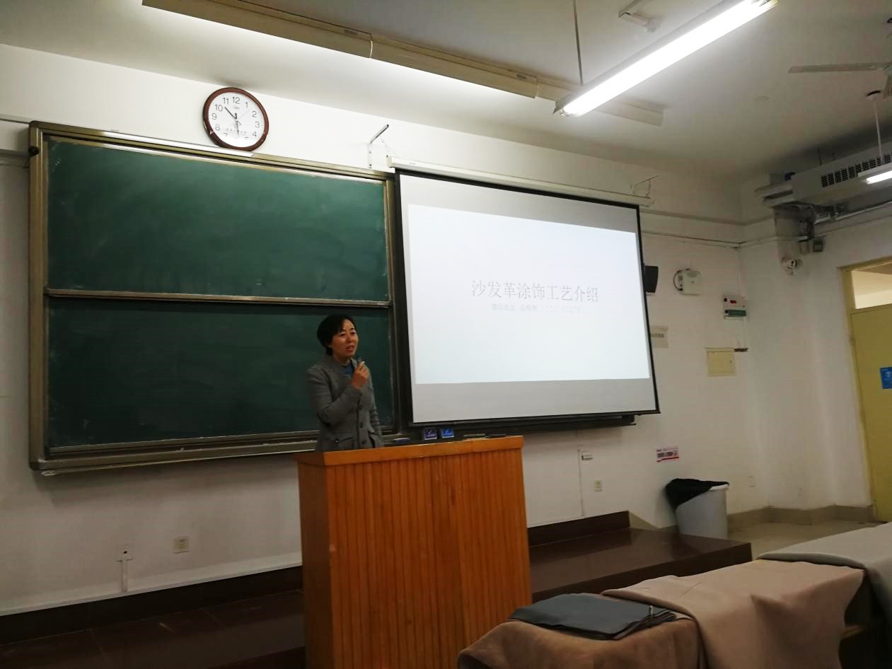 为进一步提升我校皮革专业学生专业认知能力,11月13日上午,我院邀请山东德信皮业有限公司总工程师岳明明走入《皮革整饰化学与工艺学》课堂,为2017级皮革专业学生上了一堂题为“沙发革涂饰工艺介绍”专题课程。生物质与制革系部分专业教师参加课堂教学。