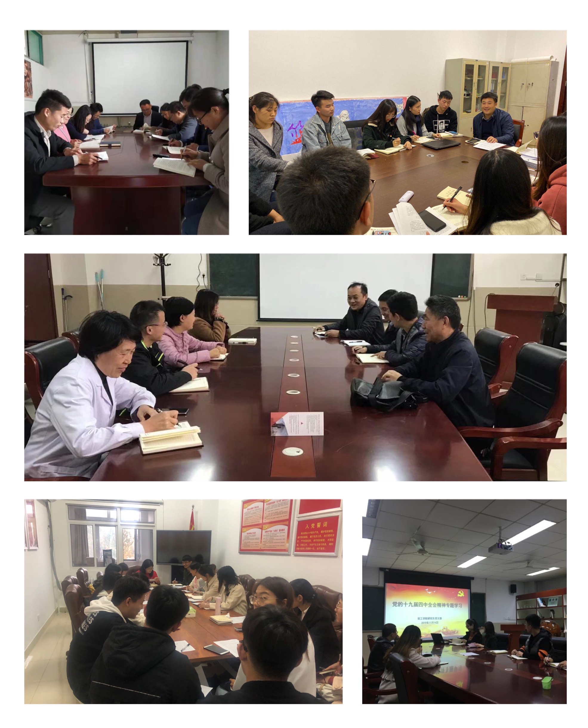 1113日至15日,按照学院党委要求,学院各党支部专题学习“贯彻党的十九届四中全会精神”。学院全体师生党员以支部为单位参加学习