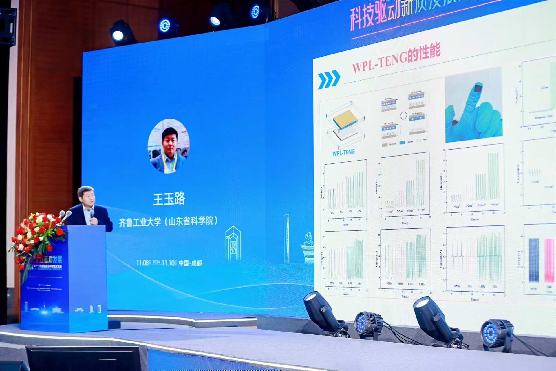 在本次大会上,学部教师祝德义教授和王玉路副教授分别做了题为“基于阳离子-π相互作用的粘附性和自愈性明胶基水凝胶”和“改性胶原基TENG负电摩擦层的制备及其摩擦电学性能”的大会报告,与来自全国的科研学者,企业专家进行了交流,得到了与会专家和行业同仁的一致认可。会议期间,参会老师和学生也积极与学校、企业参会人员等进行了学科前言发展的探讨,为后续合作打下了基础。